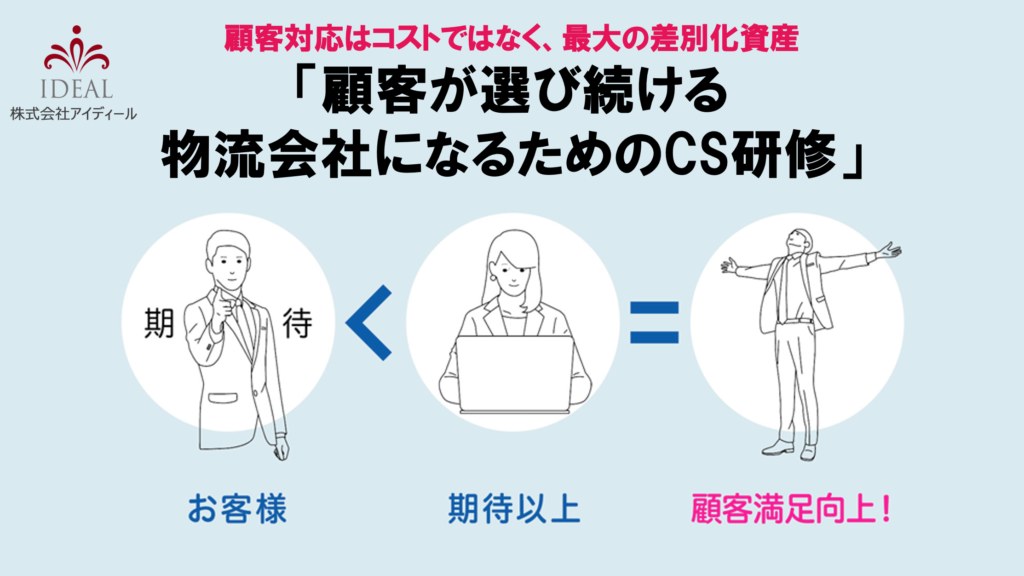 「顧客に選ばれ続ける物流会社になるために、社員一人ひとりの行動を変化させること」を目的にしたCS(顧客満足)研修です。
